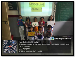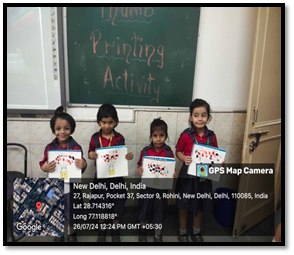 Many activities were organized under this head like story telling, thumb printing, mask making ,local market ,chart making on fruits and vegetables, shapes were introduced etc.